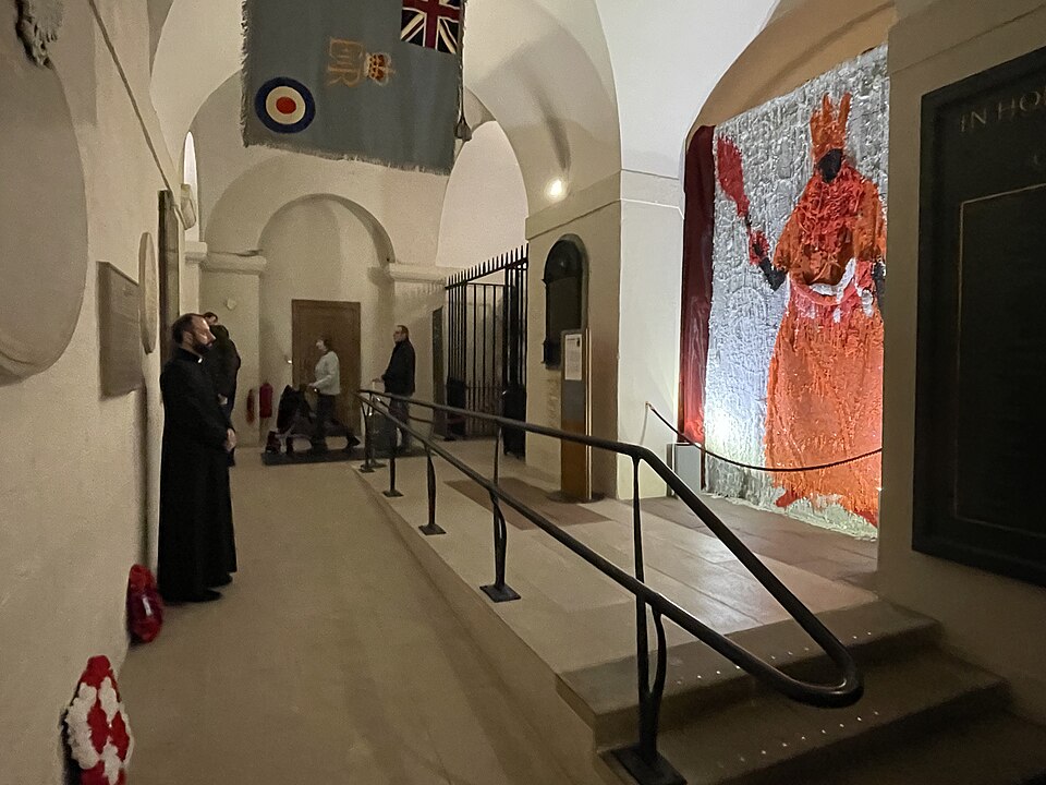 English: "Still Standing" a monument by Victor Ehikhamenor displayed at St. Paul's Cathedral in February 2022. It depicts the Oba of Benin standing beside a monument to Admiral Rawson who led the Punitive Expedition to the Kingdom of Benin in 1897. |